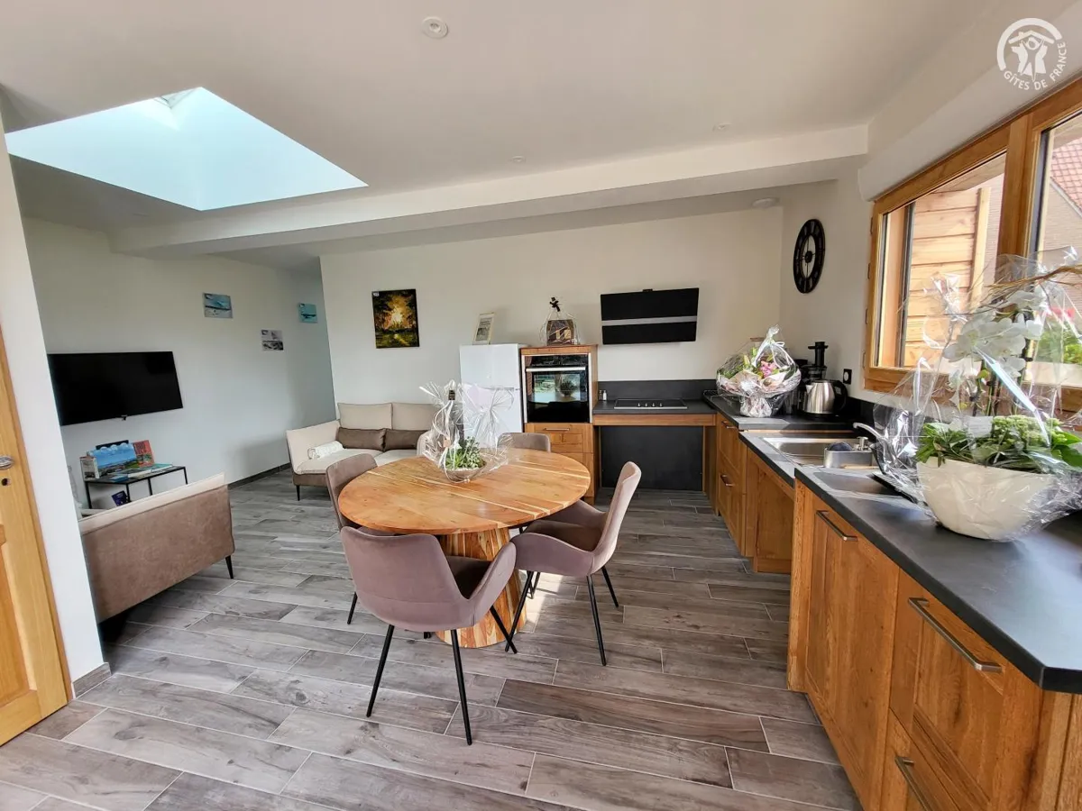 A proximité de la forêt d’Eperlecques, du fameux blockhaus et de Saint-Omer, Lucie vous accueillera toujours avec sourire et enthousiasme en vous faisant visiter son gîte, une ancienne dépendance qui a été entièrement rénovée et pensée dans une démarche environnementale : matériaux écologiques -parquet en chêne et tuiles de seconde main, panneaux solaires, récupération d’eau de pluie pour le lave-vaisselle, la machine à laver, le WC, composteur… .