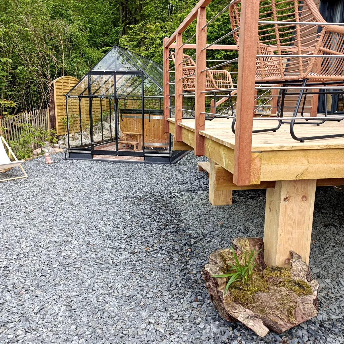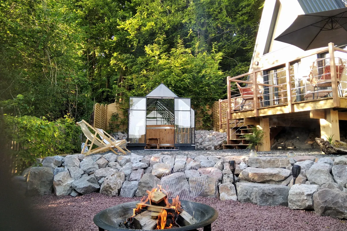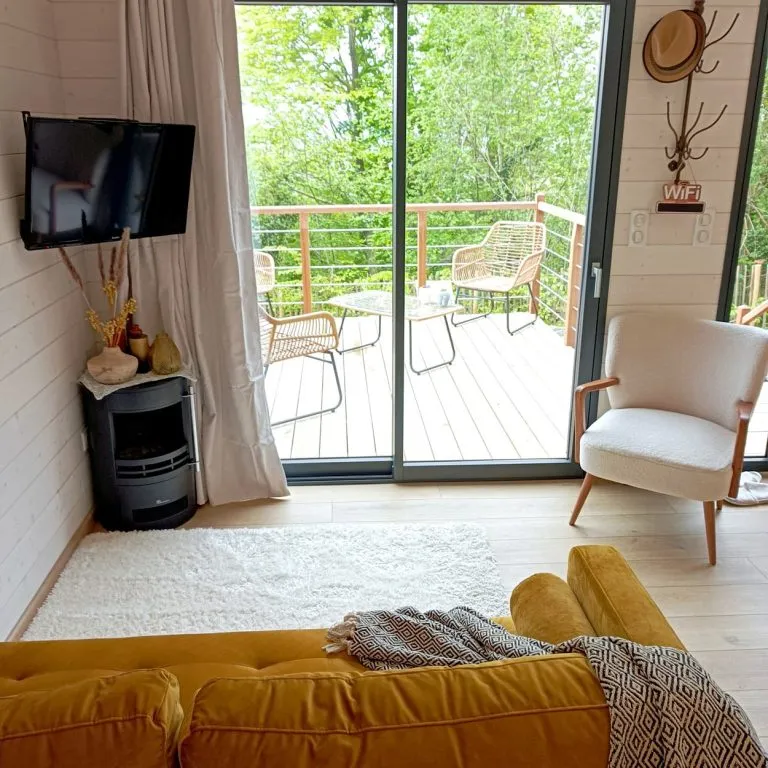Tout est pensé pour confort des hôtes : le bain nordique sous verrière – bain en bois avec un eau chauffée à 38 degrés, illuminé le soir, le brasero, les chiliennes sur la terrasse, les produits locaux si vous commandez les repas. Et si le besoin s’en faisait sentir, vous pourrez réserver un massage, puisqu’il y a un centre de soins sur site !Bref, un séjour au vert pour se ressourcer à deux dans un nid douillet!
