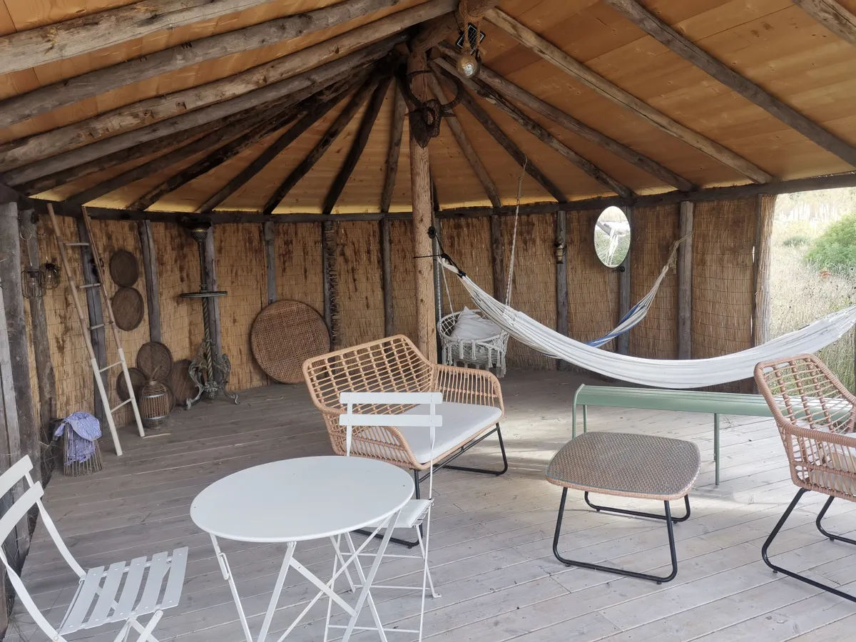 Au fond du jardin, un espace en pleine nature a été aménagé pour profiter pleinement du cadre environnant. Un lieu propice à la contemplation, au repos et à la méditation.