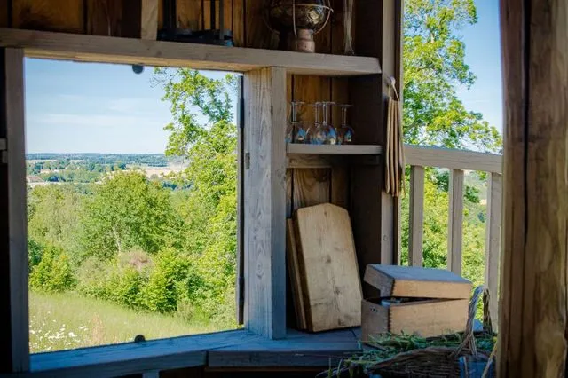 La cabane perchée (2 chambres, 5 personnes, proposée en chambre d’hôtes) est construite autour d’un châtaignier plusieurs fois centenaire et vous offre tous les conforts : vous pourrez ainsi profiter d’un séjour au cœur d’un espace nature avec des vues imprenables sur les paysages vallonnés du Perche.