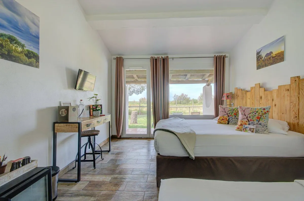 Entre le soleil, le chant de la nature, la fraîcheur de l’étang de Launes et la douceur de vivre de la Camargue, vous ne pourrez qu’être séduit par ce décor de carte postale.