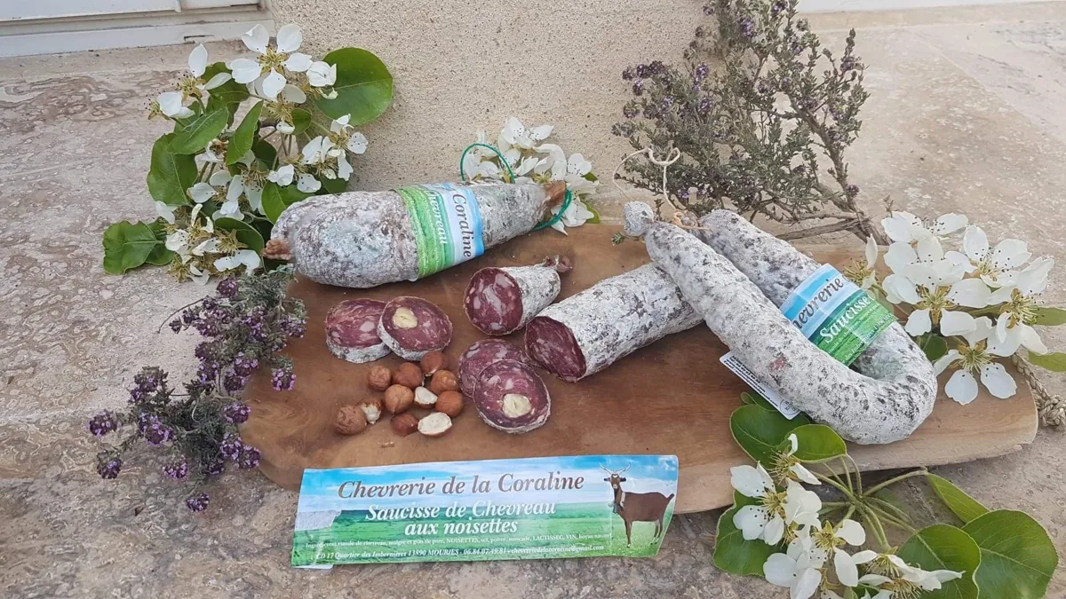 La chèvrerie de la coraline est issue de la passion de deux sœurs : Coralie et Coline Boyer, éleveuses de chèvres du Rove et Alpines. La chèvrerie propose des fromages de chèvre aux herbes, épices, miel, des yaourts et brousse, ainsi que différents morceaux de viande de chevreau de qualité (collier, carré, épaule, gigot, filet, poitrine), terrines ou saucisson de chèvre.