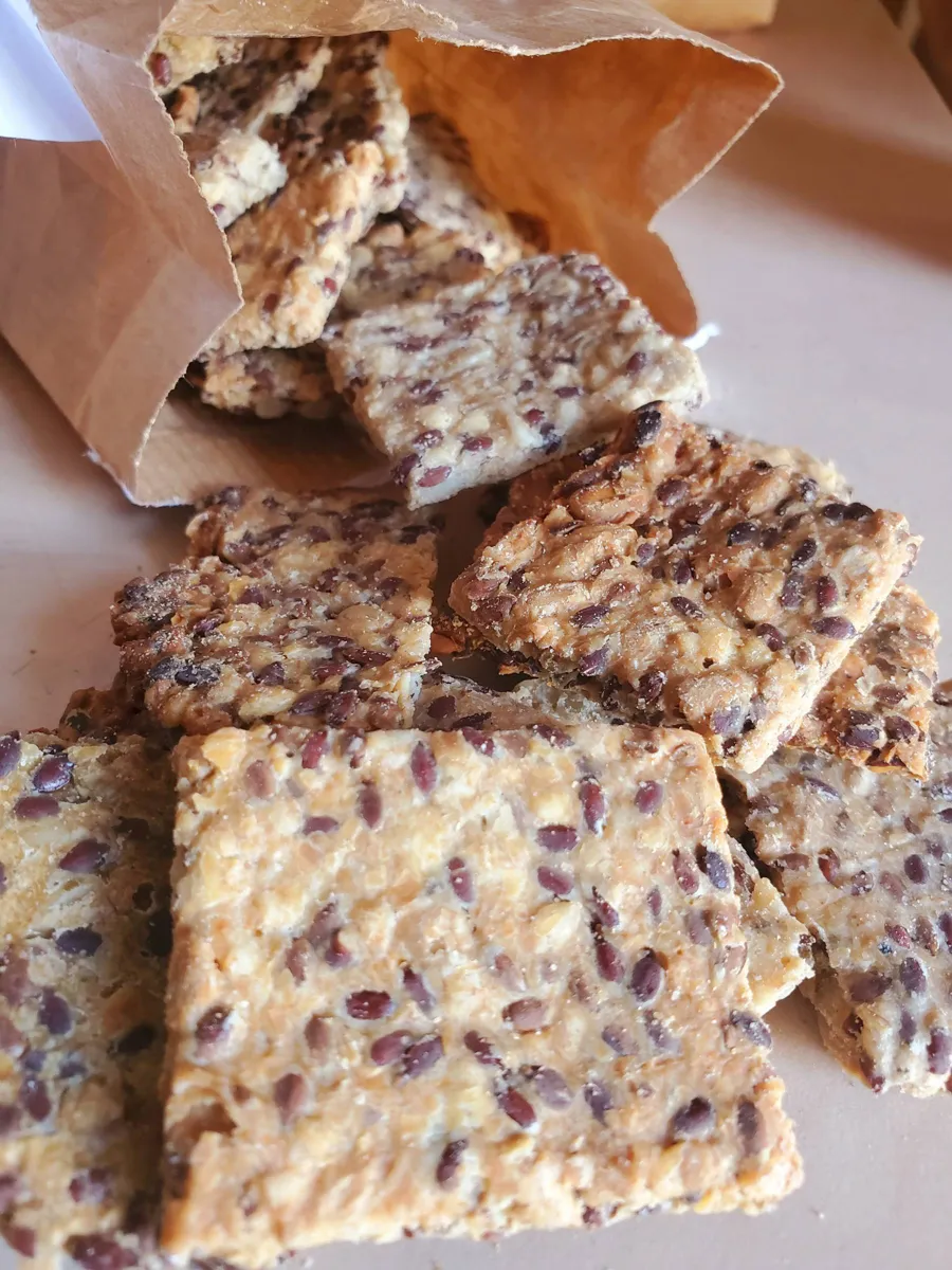 La ferme possède une longue histoire de fabrication de pain à la ferme et le savoir-faire qui l’accompagne. Elle développe en complément une nouvelle gamme de produits de snacking : crackers paysans ou houmous fait maison. À découvrir absolument !