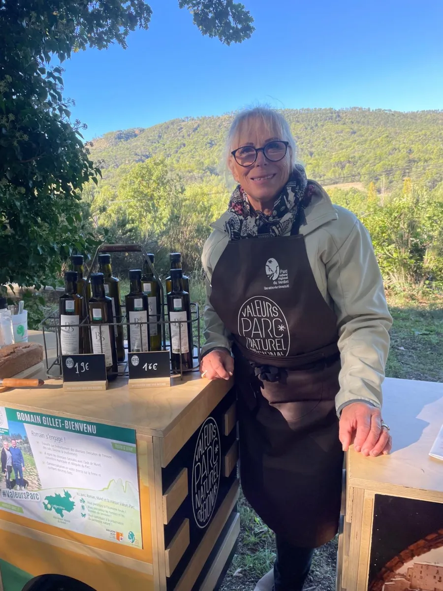 Muriel Gillet qui tient la chambre d’hôtes « la maison d’Anaïs » vend également l’huile d’olive issue des vergers familiaux, qu’elle a transmis à son fils Romain.