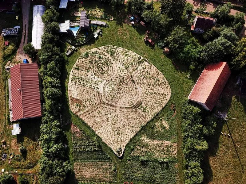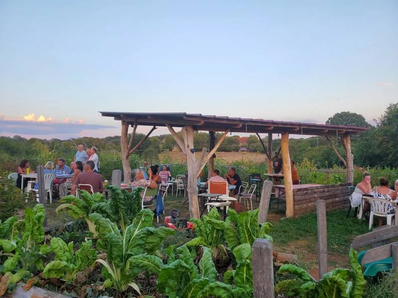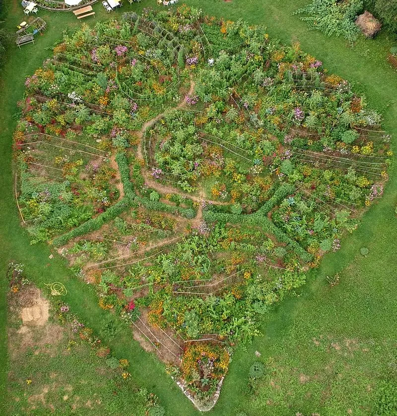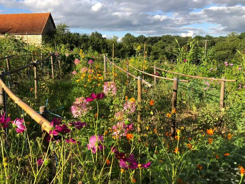 Dans cette ferme bio pas comme les autres, vous y trouverez un jardin en forme de cœur où se mélangent légumes et fleurs, ainsi que des brebis, des ânes, des poules et des lapins.
