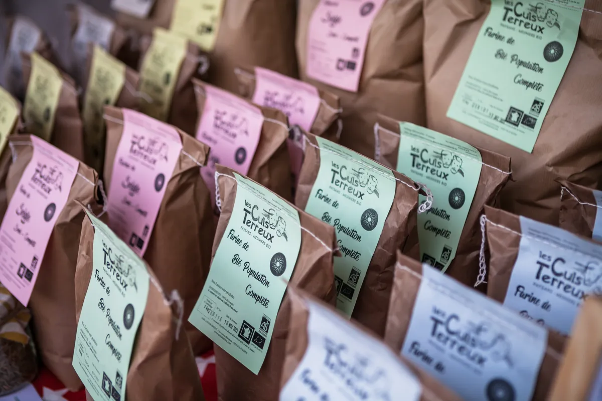 La transformation se fait sur place, sur meule de pierre, lentement. Un geste ancien, assumé, qui préserve la richesse nutritionnelle du grain et donne naissance à des farines expressives, recherchées par des boulangers artisans. De la semence à la vente, chaque étape est maîtrisée, sans artifice ni standardisation.