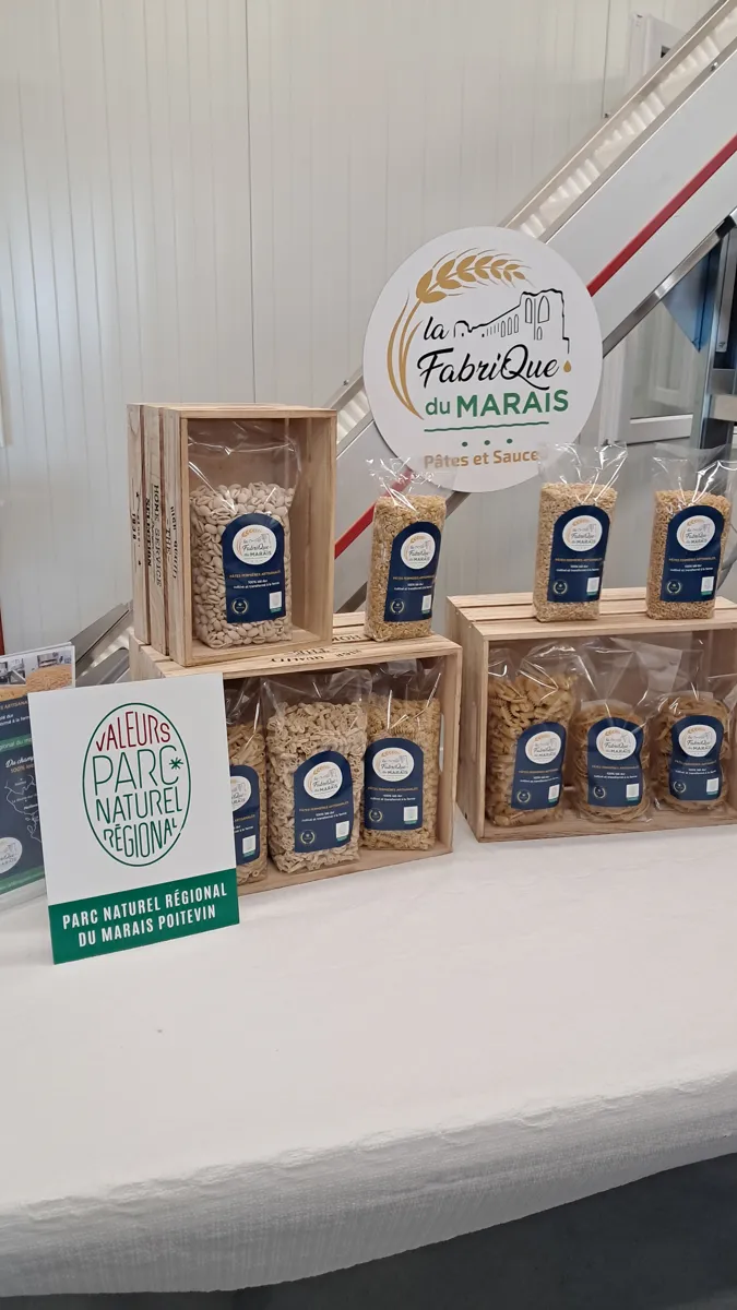 Il offre avec la Fabrique du Marais une gamme de pâtes artisanales accessible à tous et marquée « Valeurs » Parc naturel régional du Marais poitevin.