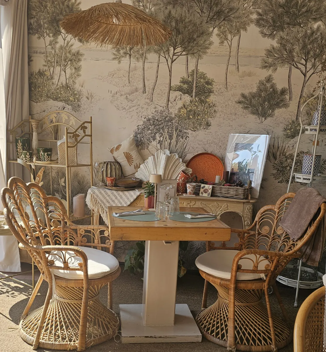 Le concept orginal de « restaurant-boutique » avec un espace de vente de produits locaux pour remporter chez soi les produits de terroir dégustés au restaurant (riz, vin, terrines) ; et la vente de vaisselle de table confectionnée par des artisans de proximité.