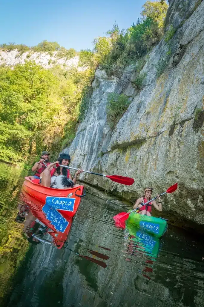 Kalapca propose une large gamme d’activités de pleine nature tels que, le canoë et kayak, l’escalade, la spéléologie, la via ferrata ou le parcours acro-roche en falaise, la via corda souterraine, le canyoning, le tir à l’arc. En dehors des descentes en canoë ou kayak, du parcours tyroliennes et du mini-acrobranche que vous pouvez également effectuer librement, toutes les activités sont encadrées par des moniteurs spécialisés diplômés d’état.